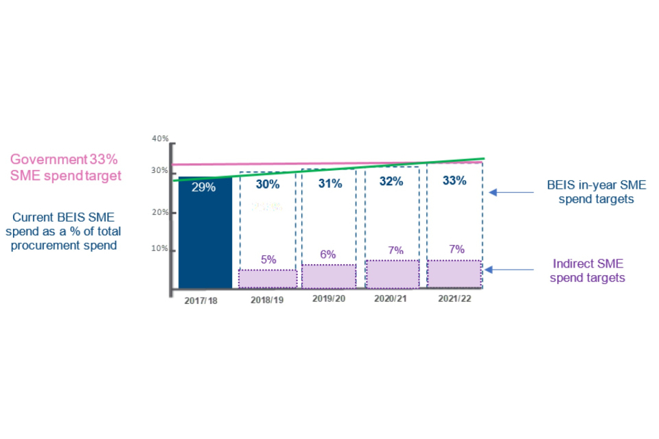 BEIS is committed to playing our part in achieving the government SME spend target and we have agreed the following targets: