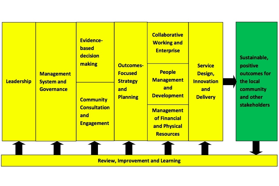 This Benchmarking Framework reflects best practice in sector-led continual improvement. It’s been designed by the sector to support library services to develop their organisational capability to achieve enhanced and sustainable positive outcomes for the communities they serve. The Framework is not a product, an award or a badge; it is a journey of improvement across all aspects of the library service and its work (underpinned by self-assessment).