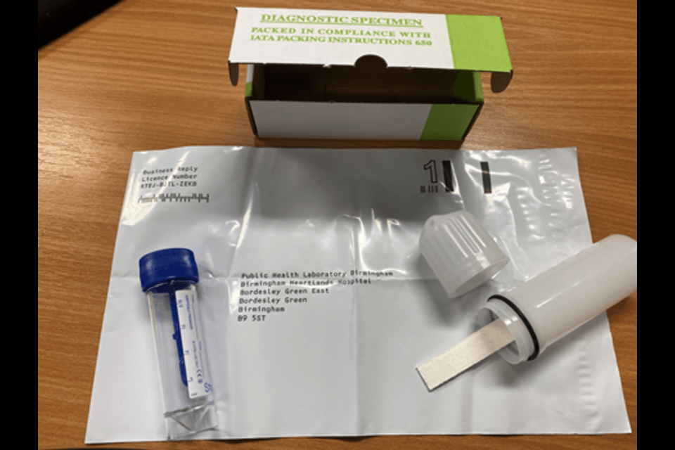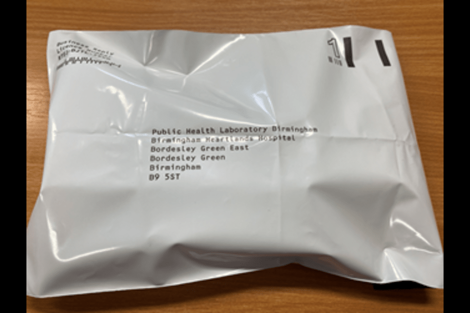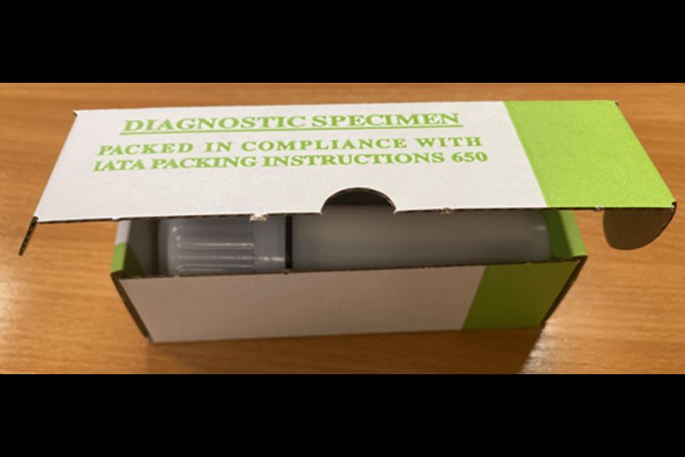 Step 4. Place the transport box, together with the completed request form, into the addressed opaque plastic envelope (UN3373) and post.