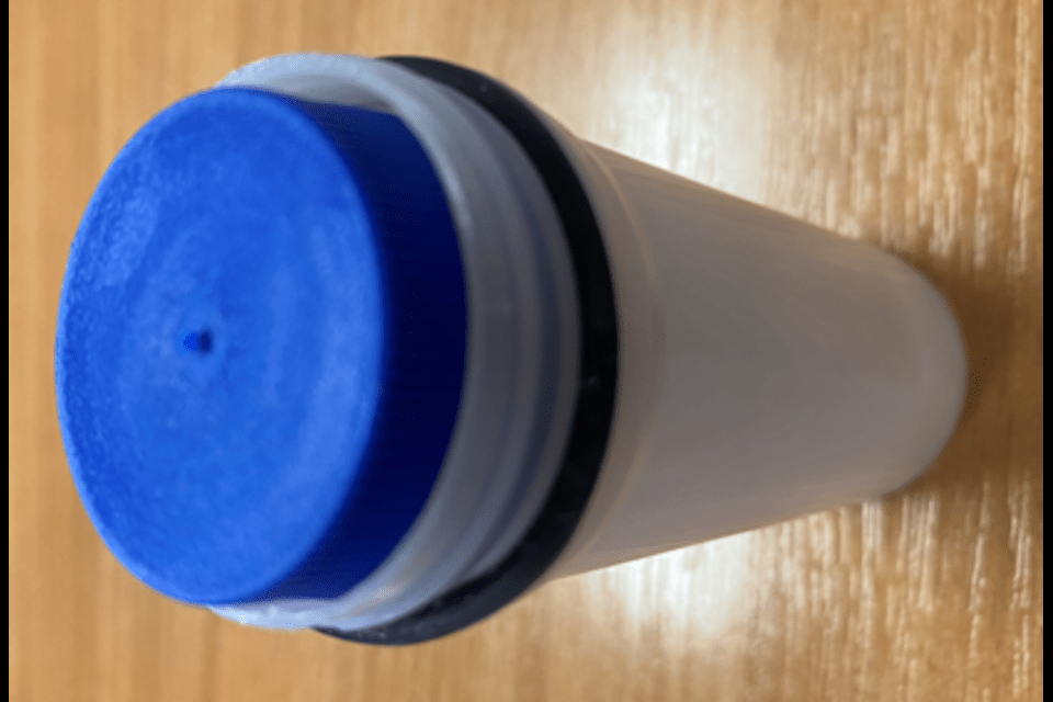 Step 2. Place the container inside the plastic transport vial with the pad of absorbent material (SUPASORB) and ensure that the lids on both the faeces container and transport vial are securely closed.