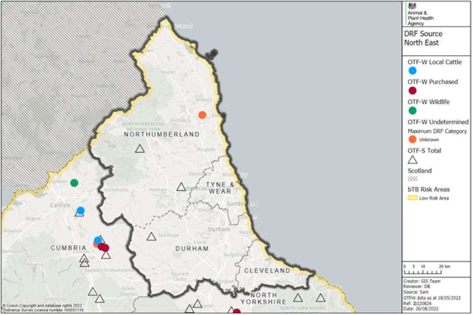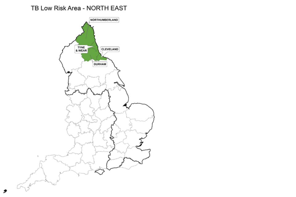 Given the history and the effectiveness of controls, it is very likely that the North East of England will continue to experience a very low number of TB incidents over the next 2 years. Given the objective of achieving TB OTF status by 2025 in each county, a focus is needed on the farming community’s attitude towards TB control and sourcing cattle to this area.