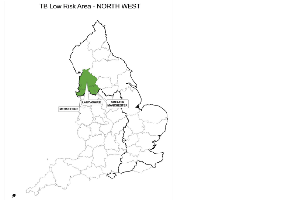 As mentioned previously, the North West has a historically low level of TB, but the south-east area around Stockport and Manchester Airport is of concern due to its proximity to the Cheshire Edge Area. Furthermore, areas around Oldham in Greater Manchester and Burnley in Lancashire will require careful monitoring in case the situation deteriorates further in these areas in the future.