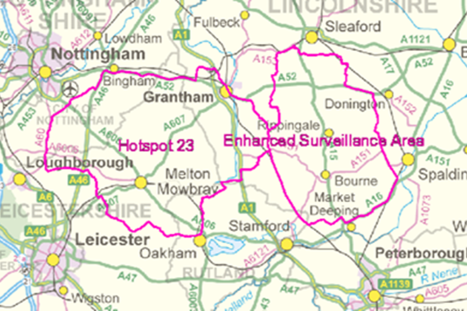 Figure 2 shows hotspot 23, around Grantham. It covers 860 km sq. It also shows the neighbouring Enhanced Surveillance Area.
