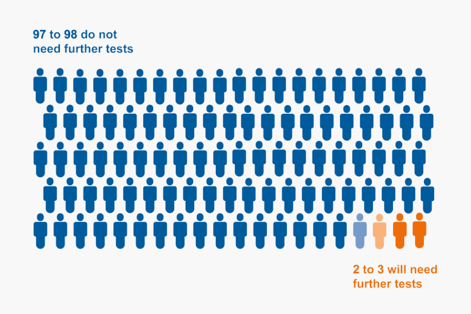 For every 100 people getting their home test kit results, 97 to 98 do not need further tests and 2 to 3 will need further tests.