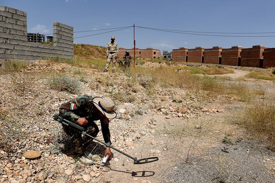 A Kurdistan troop takes part in training to find Improved Explosive Devices as part of his training which is being delivered to them by British Soldiers in Erbil, Iraq.