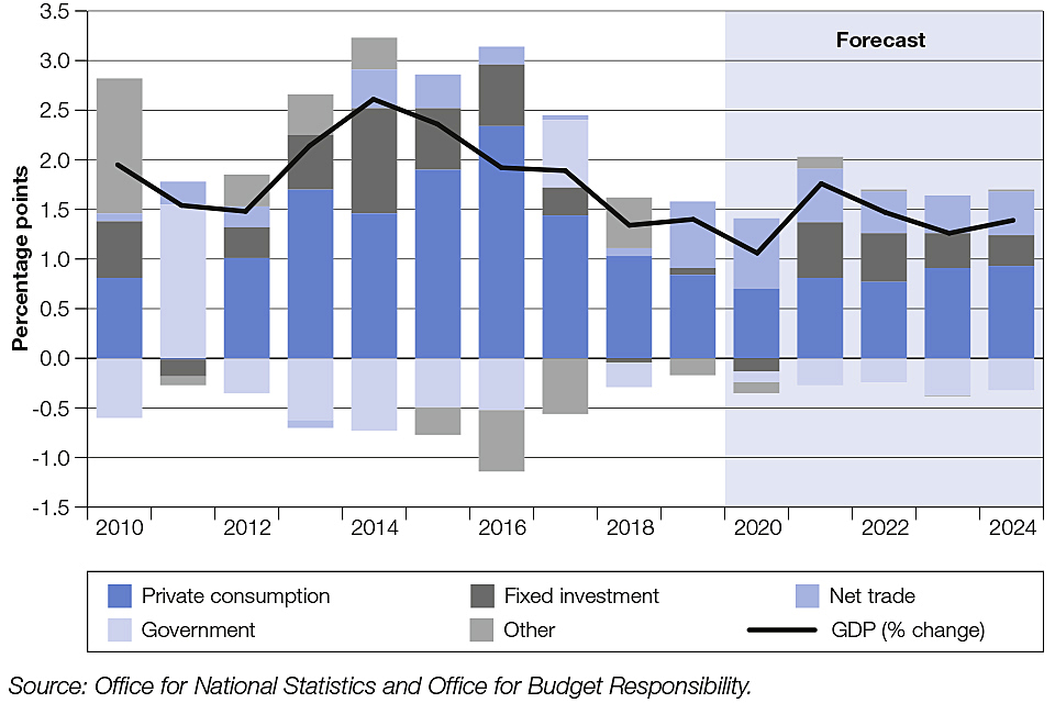 ‘Economic and fiscal outlook’, OBR, March 2020. ↩