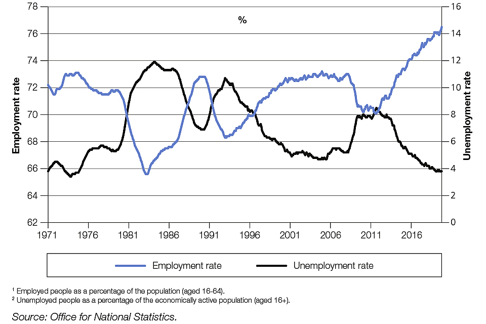 The UK economy has many strengths. It has a globally competitive tax system, it is home to many highly innovative firms, has a world-beating science and research base, and has sound, independent macroeconomic institutions. Employment growth remains strong – the employment rate reached a record high in the three months to December 2019 – and earnings growth remains above inflation.