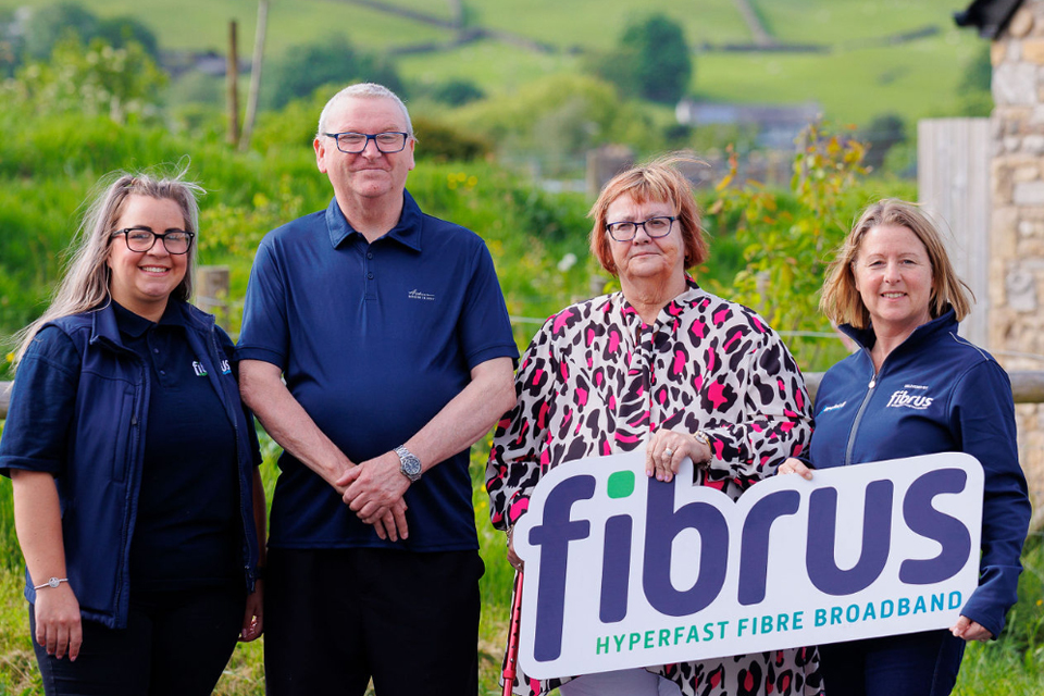 (Left to right) Emma Gavin, Fibrus Senior Trading Manager, Maxine and Keith Brown, Libby Bateman, Fibrus External Stakeholder Manager (Image: Fibrus Broadband)