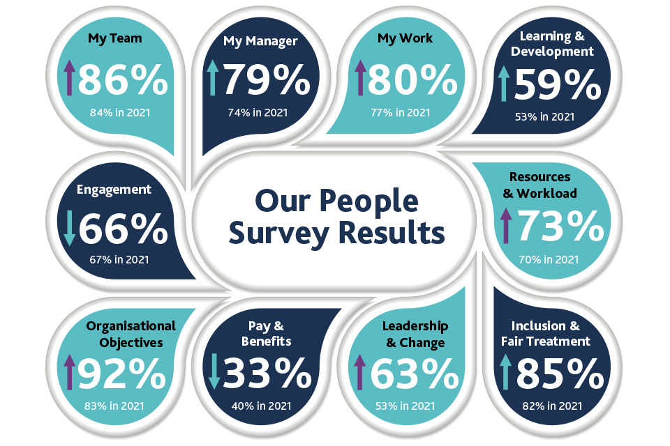 Looking inwards, our transition to an executive agency has enabled us to strengthen our governance and assurance frameworks. A new board of non-executive directors is in place, and it was pleasing to see our scores for Leadership and Managing Change in the 2022 People Survey increase by 10 percentage points. Overall, we saw positive trends in eight of the 10 areas reported. There is still room for improvement though, and we have put in place a new People Strategy to help us deliver our objective of making BDUK a great place to work for everyone.