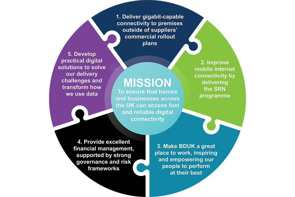 BDUK is an executive agency with a mission to ensure that homes and businesses across the UK can access fast and reliable digital connectivity. We are responsible for the rollout of gigabit-capable broadband and the expansion of mobile coverage in hard-to-reach areas of the UK.