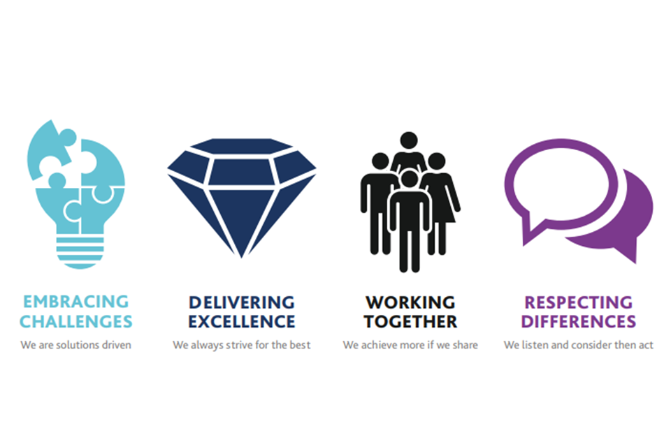 BDUK’s work is underpinned by four core values: Embracing Challenges, Delivering Excellence, Working Together and Respecting Differences.