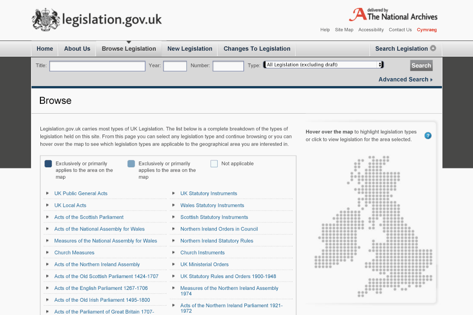 Screenshot of Legislation.gov.uk