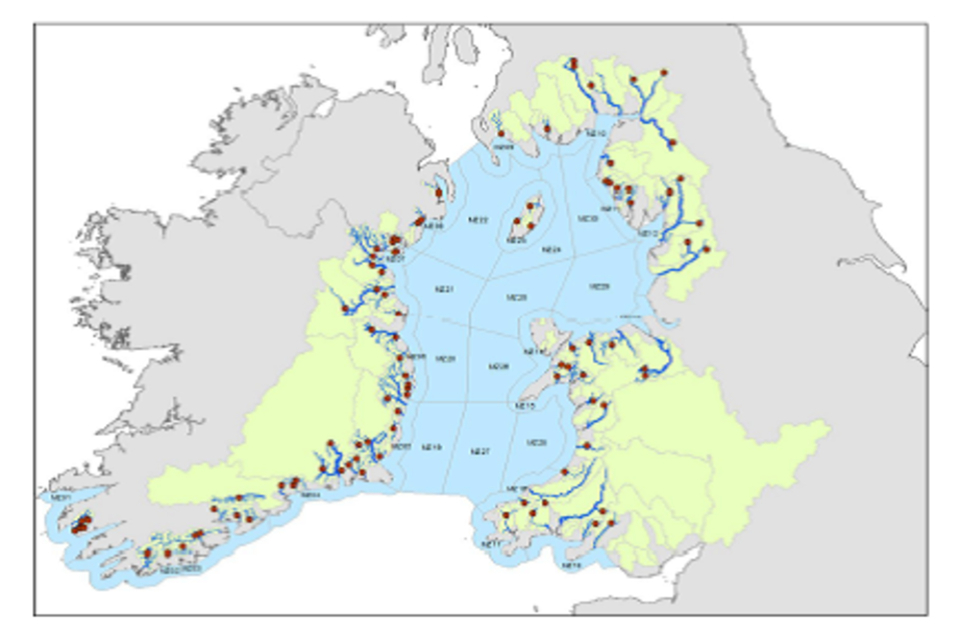 Figure 3: The nine distinct groups of sea trout populations around the Irish Sea