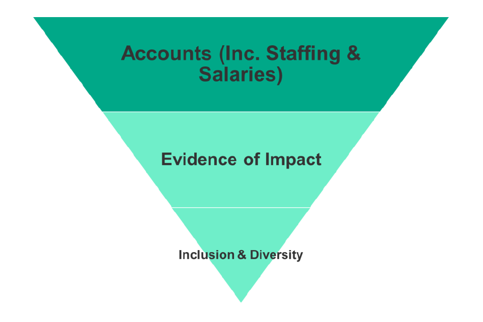 Views about four types of charity data were explored: financial accounts, activities, staffing and salaries, and inclusion and diversity data. All four types of data considered were seen as important to the public. However, a clear hierarchy emerged, with financial information and evidence of impact being prioritised as most valuable to the public when making decisions about supporting charities. This was because participants wanted to be able to trace and be reassured about where their money would go and what difference it would make to their cause when it is given to a charity. Whilst participants understood that not all support would make it to the front line, they wanted to know that the amounts being spent of salaries, management, administration and marketing were appropriate and not ‘wasteful’. Inclusion and diversity data was seen as important to show that charities are living their values - and charities having beneficiaries represented on their boards and working / volunteering for the organisation was seen as important – but this was a lower priority for most participants than the other types of data.