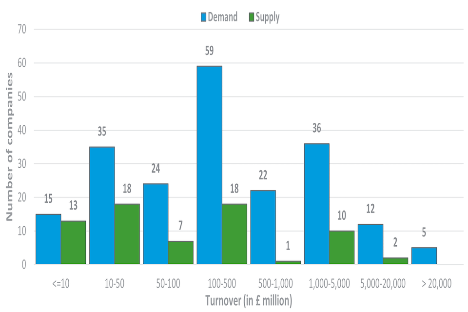 Our rationale is to maximise robustness by combining two approaches with known strengths and weaknesses. The bottom-up approach focuses on known companies and lets us plan representative primary research; the top-down approach uses statistics to find “hidden” economic activity and market demand, providing a framework to weight the survey responses to reflect the market, and mitigate the risk of survey non-response.