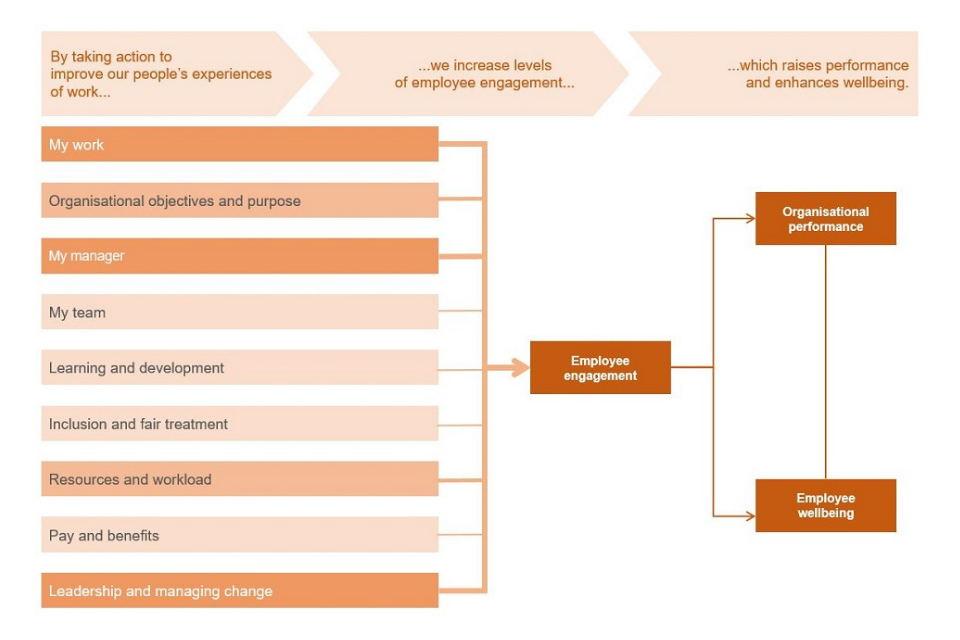 The framework underpinning the analysis of the Civil Service People Survey is based on understanding the levels of employee engagement within the Civil Service and the experiences of work which influence engagement. The ‘Employee Engagement’ section provides more details on the engagement index, while the ‘Wellbeing indices’ provides more details on the wellbeing indices.