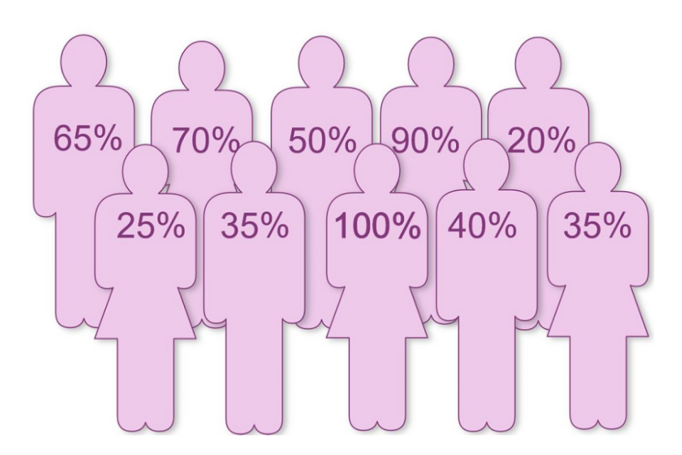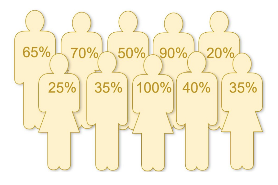 For a team or organisation level Proxy Stress Index score, the Proxy Stress scores of all the individuals in the group should be added up, and that score divided by the number of individuals in the group.