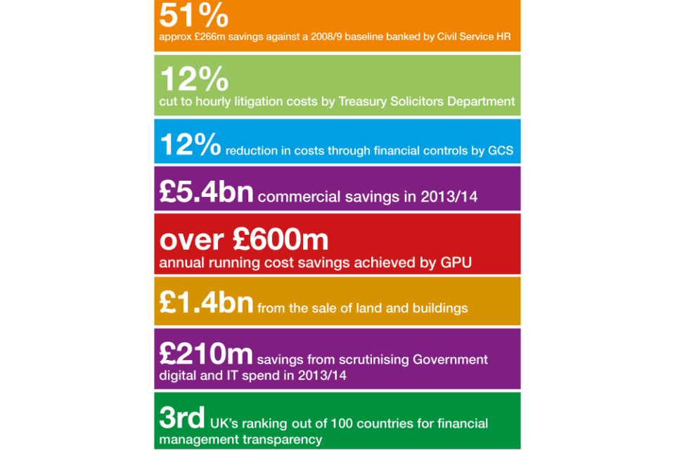 the Crown Commercial Service, established in April 2014, brings our commercial capacity into 1 organisation, led and driven by the Chief Commercial Officer. £5.4bn commercial savings have been achieved in 2013/14, against a 2009/10 baseline