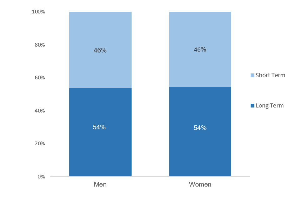 Bar chart showing percentage of days lost to long and short term absences by sex