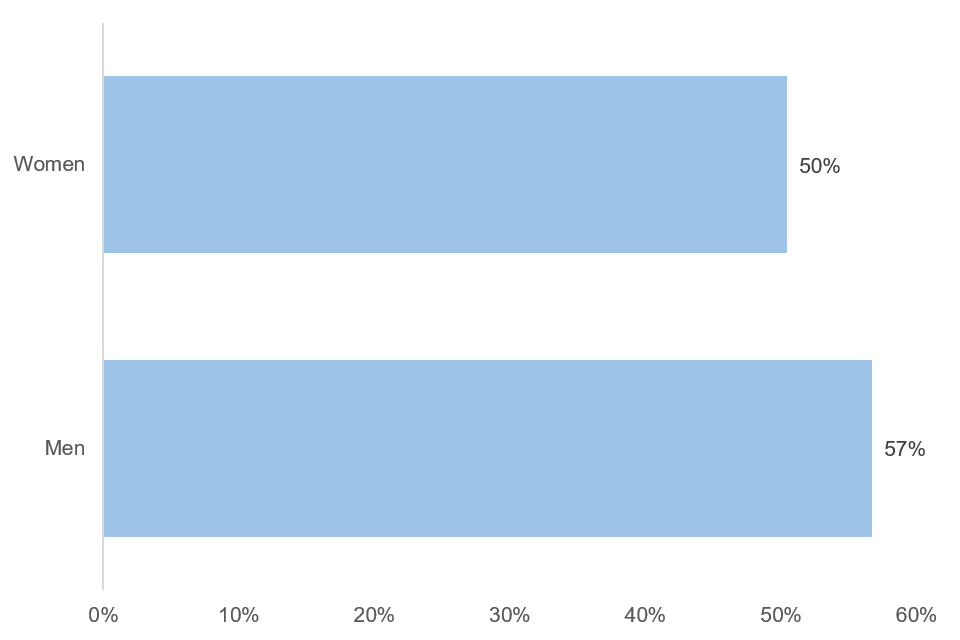 The percentage of staff with no sickness absence is seven percentage points higher for men (56.7%) than for women (50.4%).