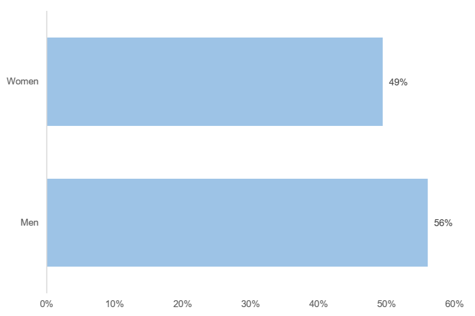 The percentage of staff with no sickness absence was seven percentage points higher for men (56%) than for women (49%).