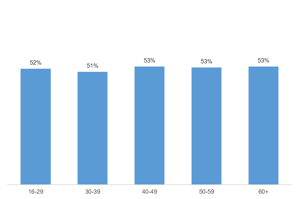 Figure 7.3: Percentage of staff with no reported sickness absence by age, 2024 (see Table 14)