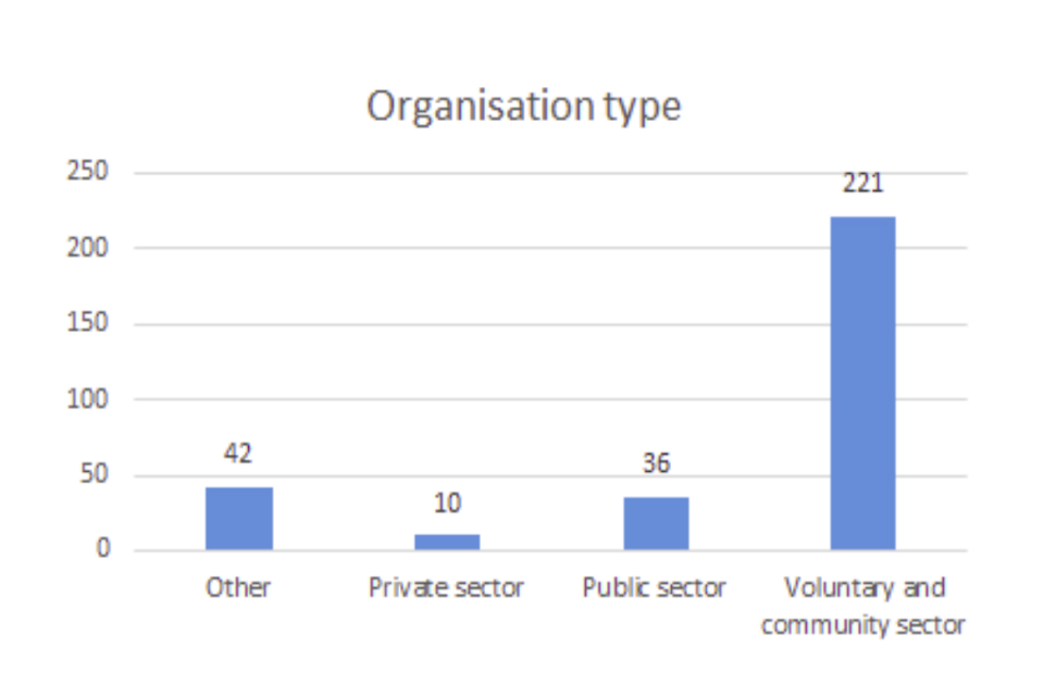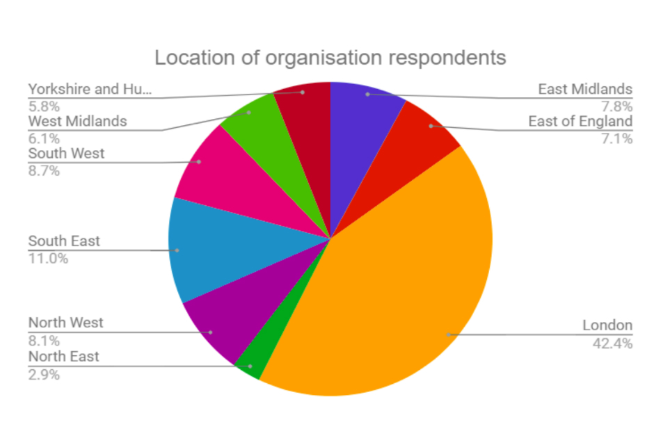 Most organisations who responded were from the voluntary and community sector (see figure 3). The location of organisations who responded covered the whole country, however, London had the most respondents (see figure 4).