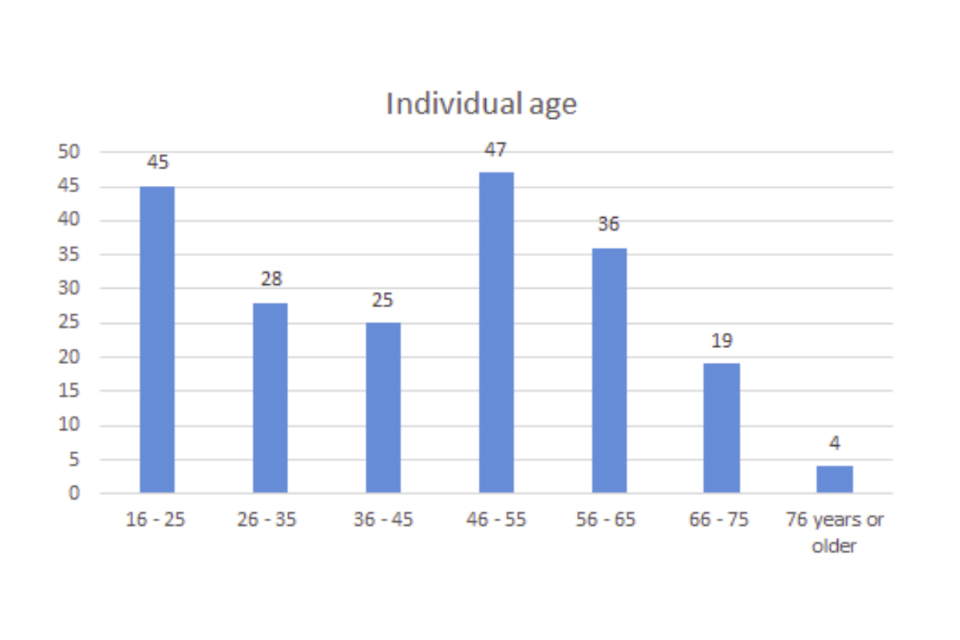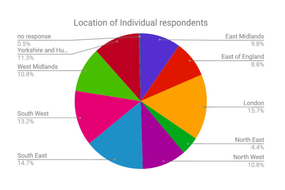 The majority of individuals who responded were aged between 16 and 25, and 46 and 65 (see figure 1). Individual respondents came from all over the country (see figure 2).