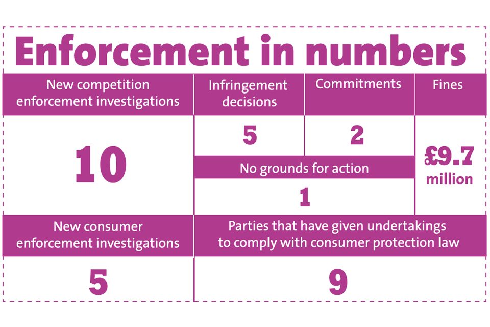 Our consumer protection law enforcement is a natural complement to our competition work. In both, we make sure that markets can be trusted, and help people to know that ‘what they’re seeing is what they’re getting’. Making sure that firms abide by consumer law, treating their customers fairly in ways which promote, rather than damage, trust, helps to create a more competitive marketplace. Our work enables consumers to make better-informed choices, meaning that firms have to work harder to earn customers’ custom, offering better products and services at keener prices to both attract and retain them.