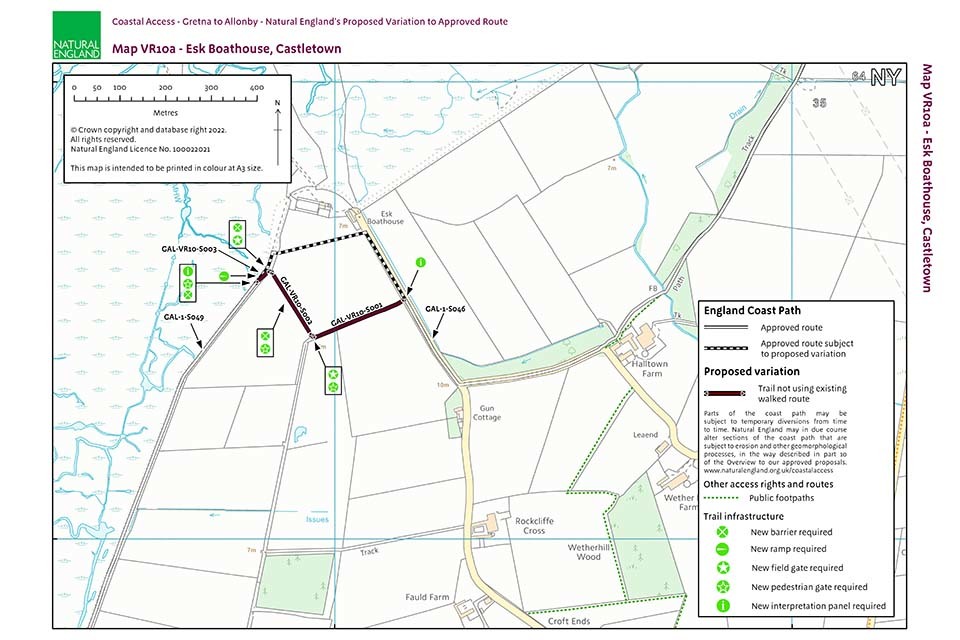 Map VR10a: Natural England's proposed variation to the approved route at Esk Boathouse, Castletown