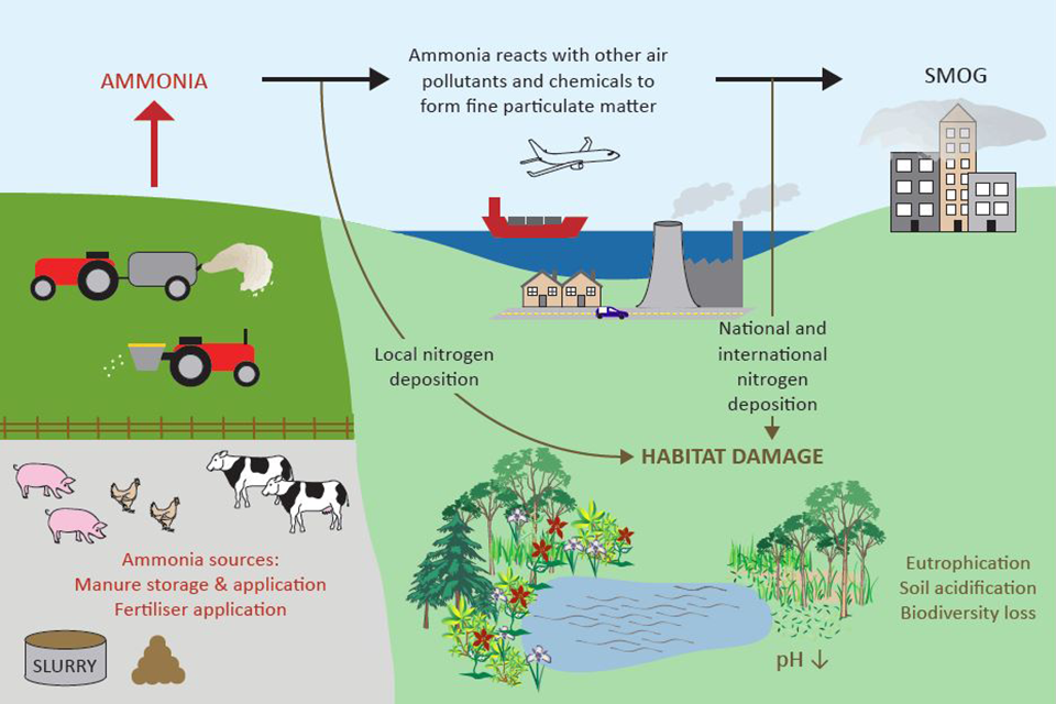 Figure 3: The environmental impacts of ammonia pollution. Image credit: Defra