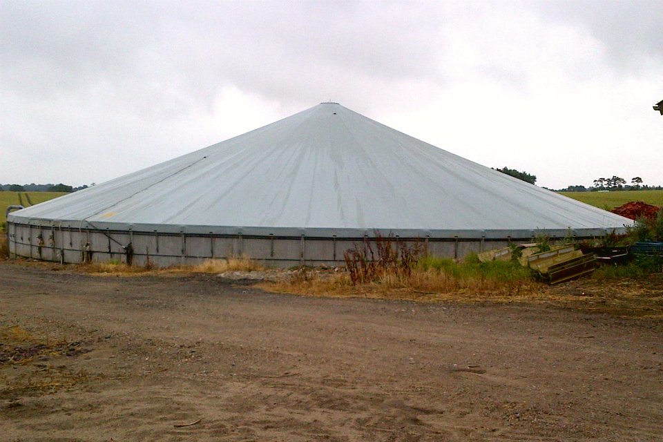Tight lid, roof or tent structures can be built on concrete or steel tanks or silos. They are highly effective, reducing ammonia emissions during storage by around 80%, and prevent rainfall entering the store. You must ensure the store has enough structural integrity to support the weight of a lid or roof.