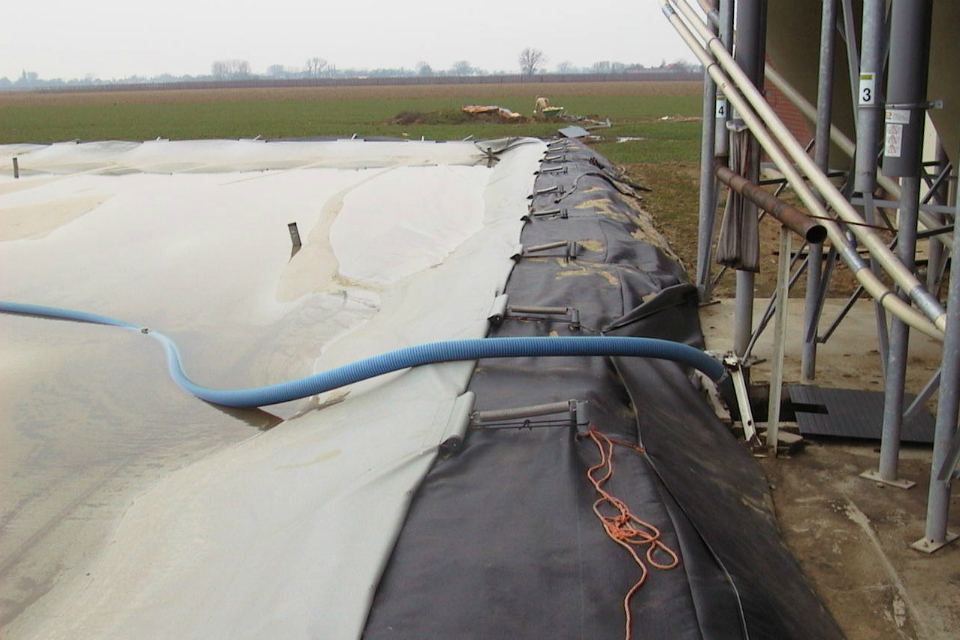 Slurry or digestate storage bags can offer a good alternative to building an above-ground covered store and reduce ammonia emissions during storage by up to 100% compared to an uncovered equivalent-sized store. They can be installed within existing storage tanks or lagoons as an alternative to installing covers. However, they may not be suitable for all locations and require some form of secondary containment (such as a bund) to ensure leaks or spills are captured and do not cause pollution.