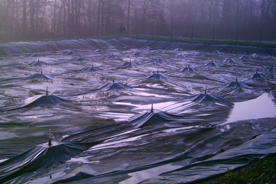 Figure 5: A floating plastic cover on an earth-banked slurry lagoon. Image credit: Defra