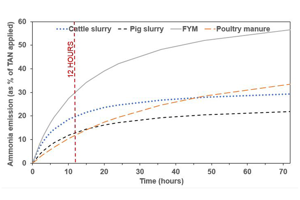 To reduce emissions of ammonia, you should apply manufactured fertilisers to the soil during favourable conditions, maximising the adsorption of ammonium ions onto the clay component of the soil and organic matter, and at a time when crops can make maximum use of the nitrogen.