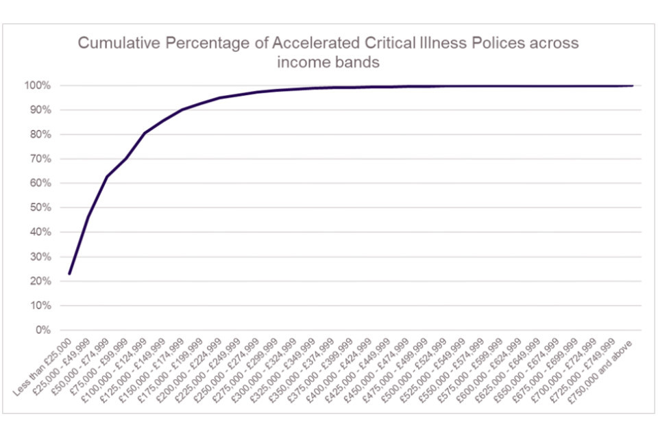 Figure 4: cumulative percentage of accelerated critical illness policies across value bands for 2020