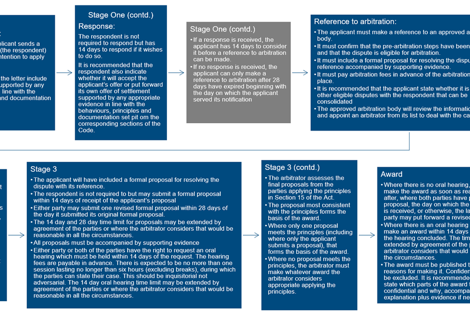 16. Many parties have already reached agreements, including by using this Code and its predecessor; however, we recognise that there are also circumstances where parties have been, or will be, unable to reach agreement by themselves. We encourage parties to negotiate as far as possible using the advice in the ‘Negotiation’ section of this Code. For businesses in England and Wales who are in scope of the Act, and where negotiation has been exhausted, we have made binding arbitration available (see Part Two).