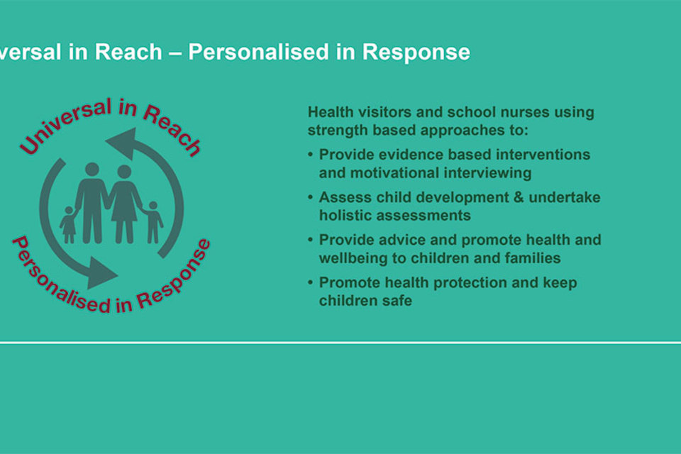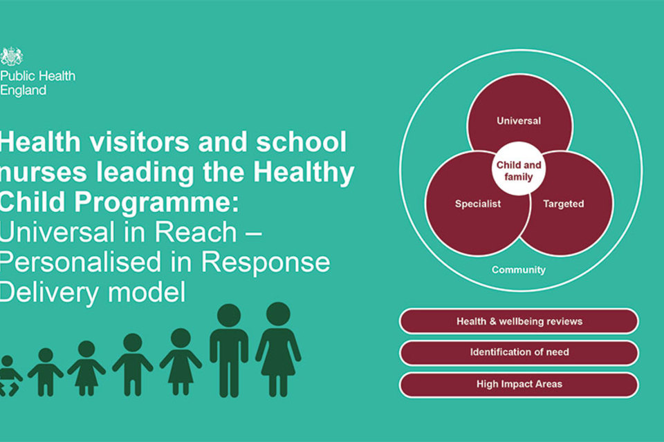 The Healthy Child Programme remains universal in reach continuing to set out a range of public health interventions to build healthy communities for families and children, reducing inequalities and vulnerabilities. It continues to include a schedule of interventions, which range from universal services for all through to intensive support. The updated model emphasises the health visiting and school nursing role as leaders of the Healthy Child Programme, whilst acknowledging the important contribution of a range of delivery partners.