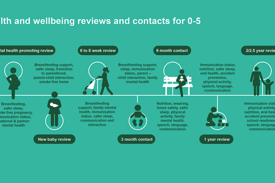 The universal reviews provide opportunity to support personalised or tailored interventions in response to individual or family need, using health visitors’ and school nurses’ specialist public health skills and clinical judgement to work with the child and family or young person to determine and address needs. They also work collaboratively with partners to deliver evidence-based interventions, protect children and keep them safe.