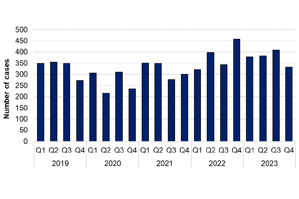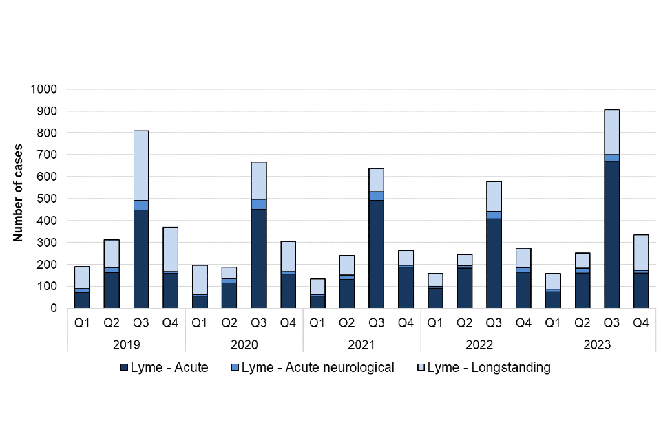 Figure 3. Laboratory-confirmed cases of Lyme disease in England by quarter, Q1 2019 to Q4 2023