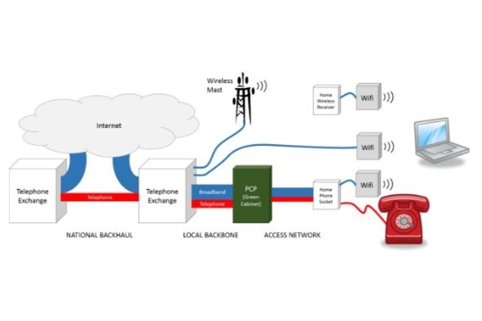 Below is an example of how a typical terrestrial broadband system in the UK currently works: