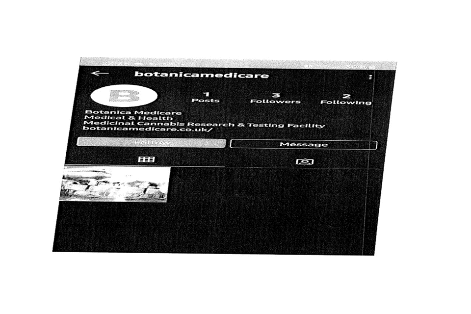 (ii) Appendix 2 – of this exhibit Mr Sharma states: “There is a website under the name of www.botanicamedicare.co.uk which is linked to his [Mr Gbla’s] companies. That website is not live and is under construction, which is to be made live in JAN 2021, as suggested by the page….”. The page provided from the website mentioned contains a printing date of 17 December 2020. It contains the word “Botanica” at the top left-hand side of the page and the following text: “This website is under construction and will be live in January 2021 - Thank you for visiting” and “Botanica MediCare a devision of Botanica Pharmaceutics goes by the trading name Botanica, and forms part of the Botanica Agriculture and Extraction Ltd (UK) Group, registered in England and W…Companies Act 2006. Companies House Registration No. 11020673. Copyright © 2020. All rights reserved”;
