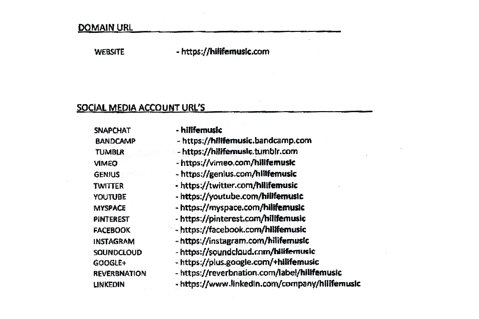 List of Domain URL's which hilifemusic is apart of such as Snapchat, Twitter, YouTube etc