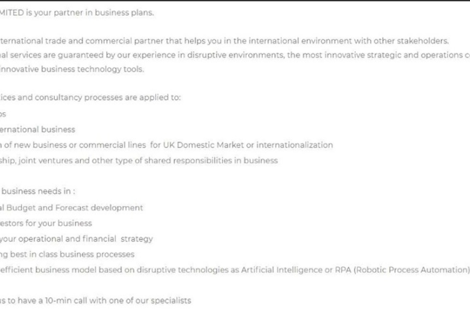22. Although the onus is on the primary respondent to support its defence, the applicant has filed, in evidence, the results of its research into the primary respondent and its lack of trading activity. Diolimar Garcia González states that a search of the Companies House website indicates that the primary respondent’s registered office is associated with at least 1,000 other registered companies and is associated with the ‘virtual office’ company 1st Formations Limited (Exhibit DGG12). Exhibit DGG13 contains a screenshot of the website page I refer to as being contained in Document 5 (attached to the defence and counterstatement). More of the screen is revealed in the applicant’s version. The services said to be on offer are: