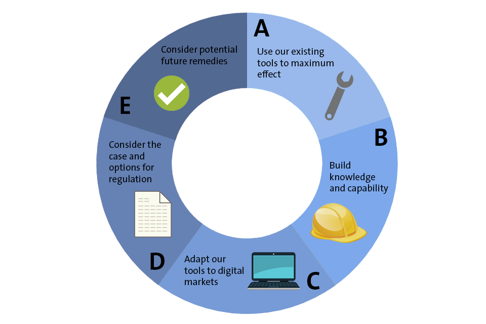 We will use our tools effectively and efficiently, considering how best to target our antitrust and consumer enforcement action, market studies, and merger assessment to digital markets.