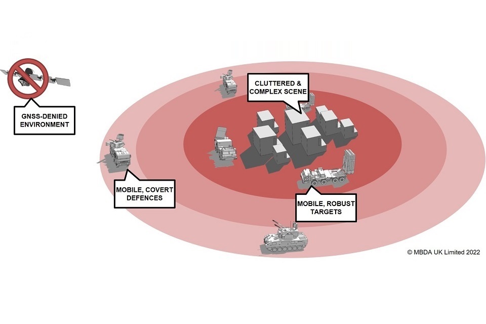 The operating environment for cooperative missiles will be highly complex. Adversaries will be well defended and the threat they pose will push our launch platforms and supporting assets further away from the area of engagement. The target may be partially or fully concealed and is likely to be surrounded by buildings, trees and vegetation which can make identification more challenging. There will be uncertainty in the scene as well as changing conditions, including metrological variation. Global Navigation Satellite Services (GNSS) will be degraded if not denied. It is this complexity that drives the need for the introduction of cooperation between missile systems.