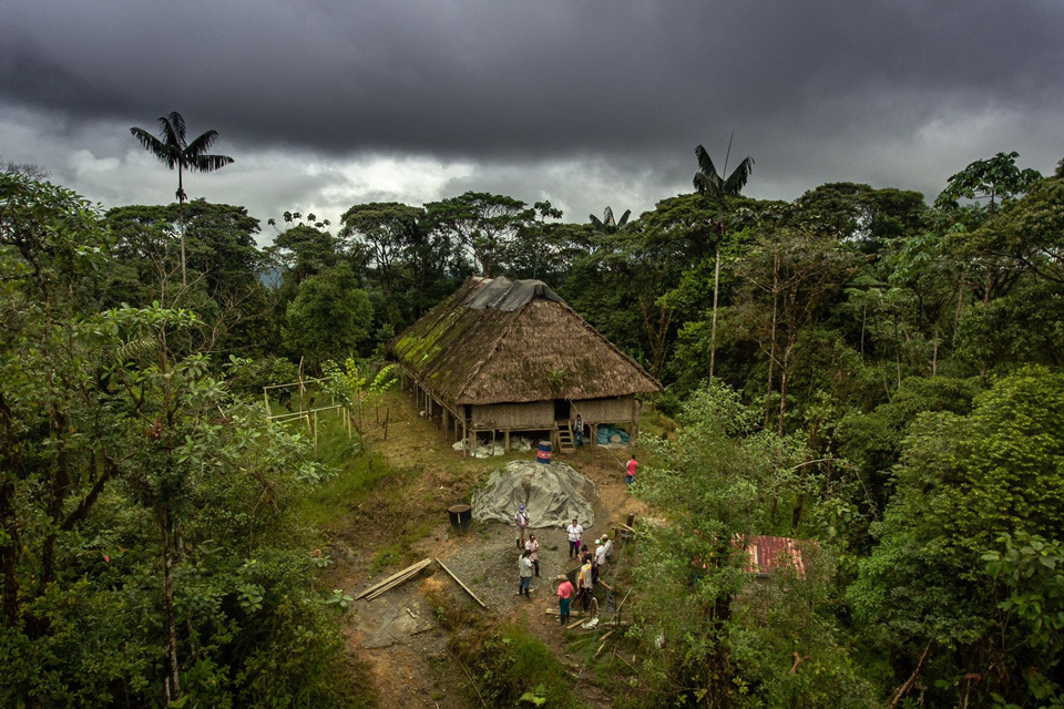 An ancestral medicine house of the Awá Tortugaña indigenous community in Nariño, Colombia. The community is supported by the UK-funded United Nations Multi-Partner Trust Fund for Peace as part of the transitional justice work related to human rights violations during the Colombian civil war. Credit: www.fondoonucol.org/tragaluz.video.