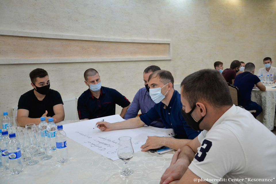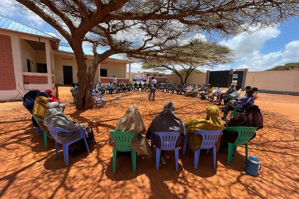 The Somalian National army and Government Officials hold in a reconciliation meeting in territory recently reclaimed from al-Shabaab. The CSSF –funded Early Recovery Initiative project facilitated a series of reconciliation and peace talks to forestall inter-clan conflict and improve community cohesion. Credit: Photo provided by the Early Recovery Initiative.
