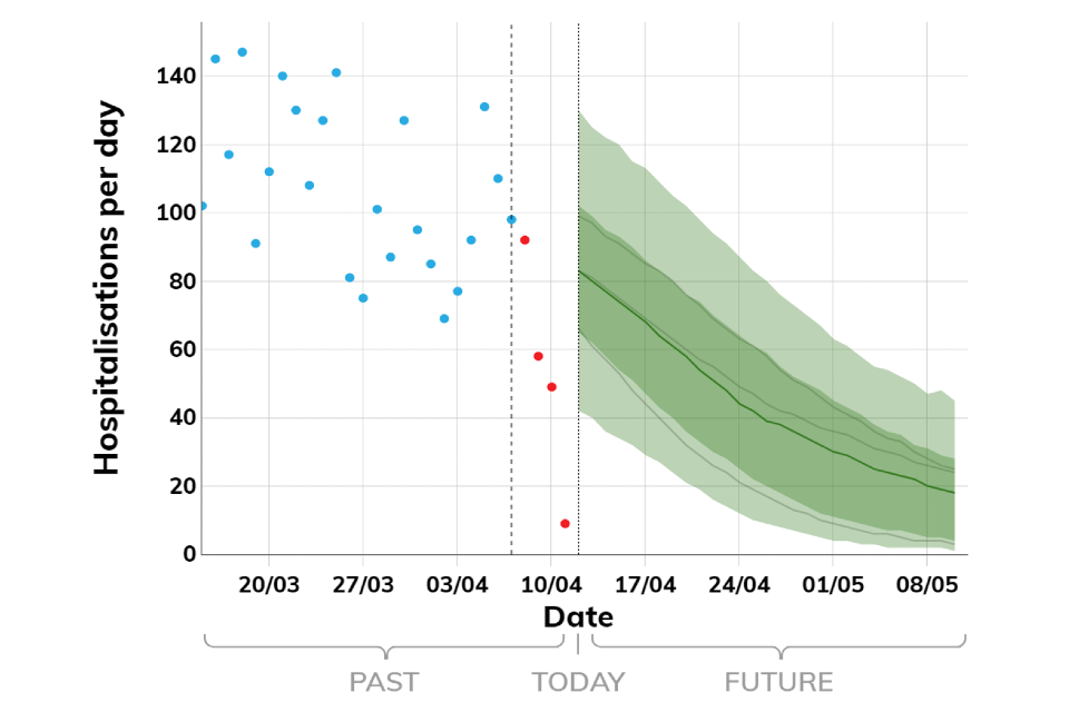 - These MTPs for COVID-19 hospitalisations± and deaths¥ are not forecasts or predictions. They represent a scenario in which the trajectory of the epidemic continues to follow the trends that were seen in data available to 11 April 2022.