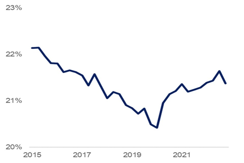 Figure 2.3: Economic inactivity, age 16-64, 2015-2022